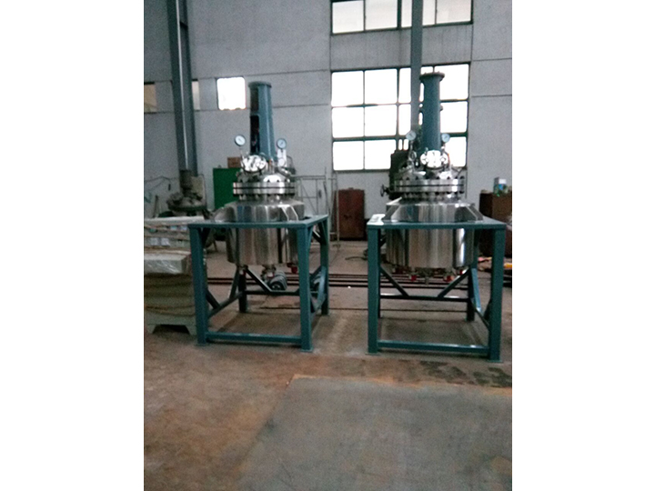 反應釜由鍋體、鍋蓋、攪拌器、電加熱油夾管、支承及傳動裝置、軸封裝置、溢油槽等組成,并配有電加熱棒及測溫、測壓表。